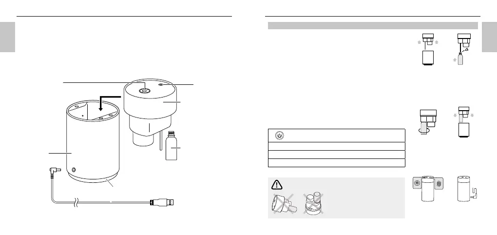 1. Plaats de verstuiver op een horizontaal oppervlak en open