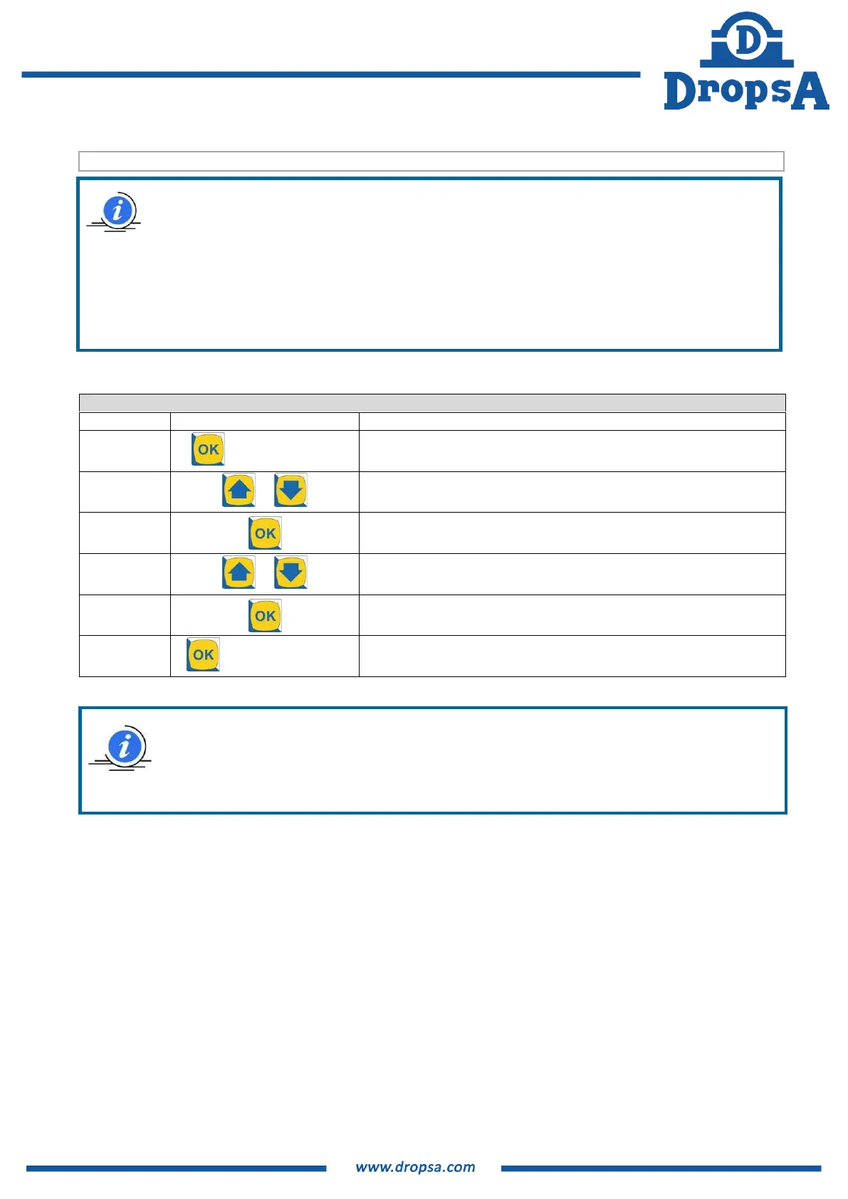 NOTE: To modify the operating parameters repeats steps 2 to 5 for all necessary values and then follow