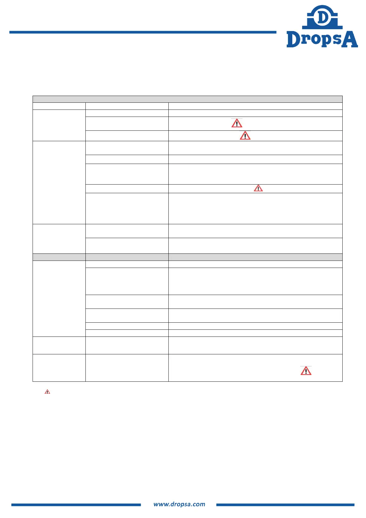 solution to fixing a problem, do not dismantle parts of the Bravo but contact an Authorized Dropsa Sales and Service Point