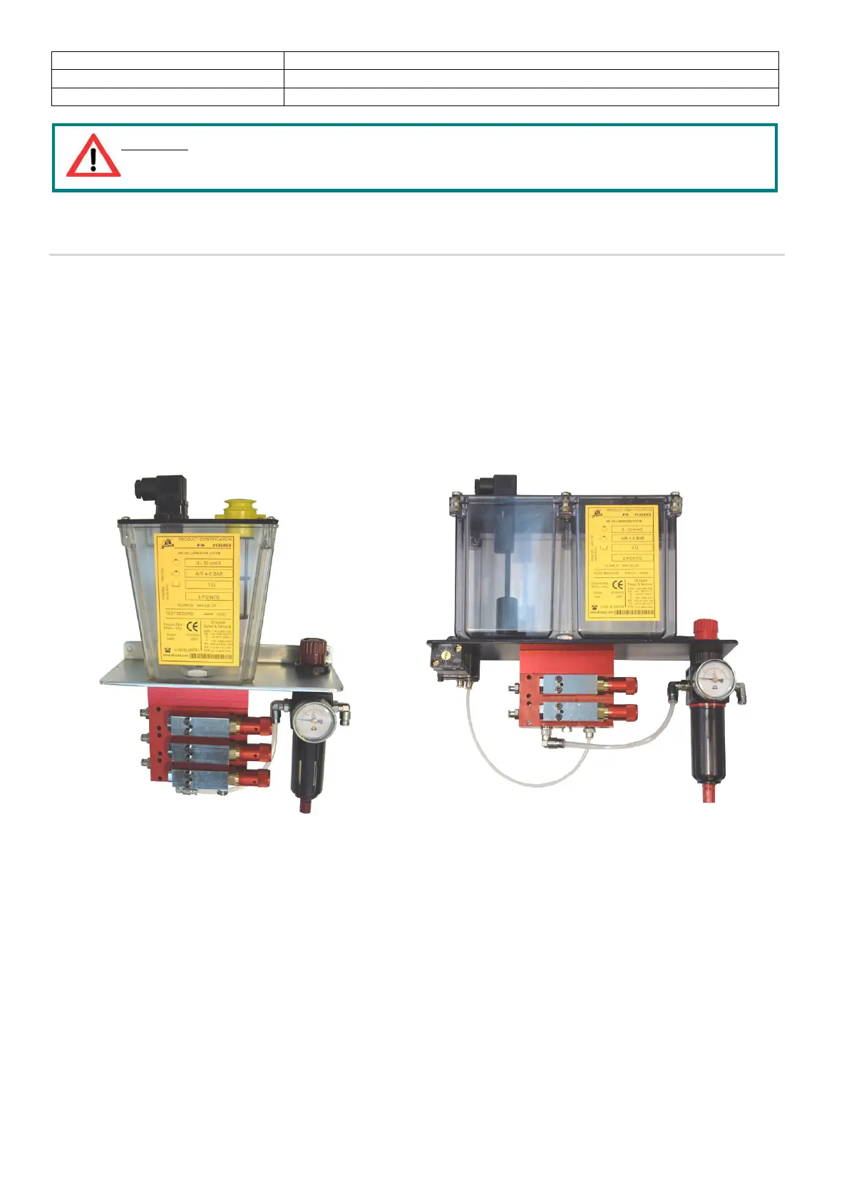 • Reservoir, made of transparent plastic material compatible with lubricants that are readily available on the market.