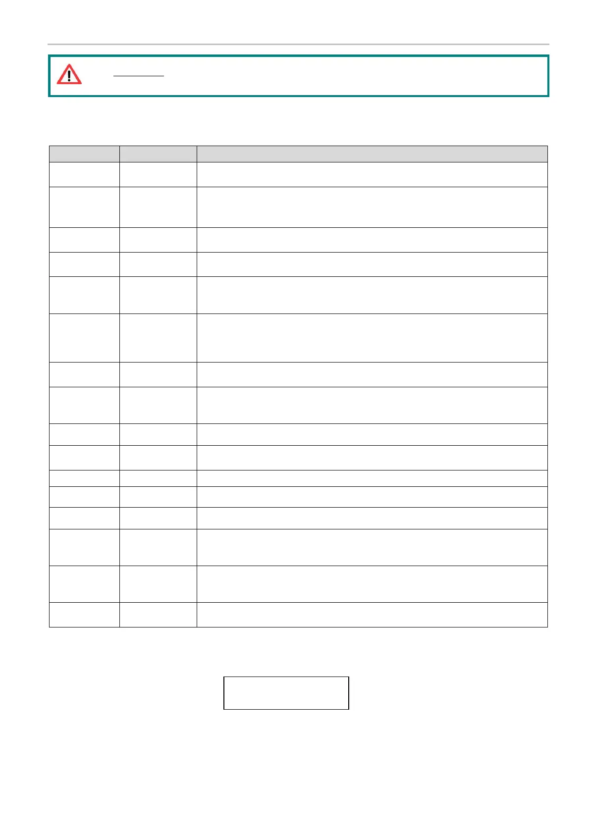 10.1 ALARM CODE TABLE