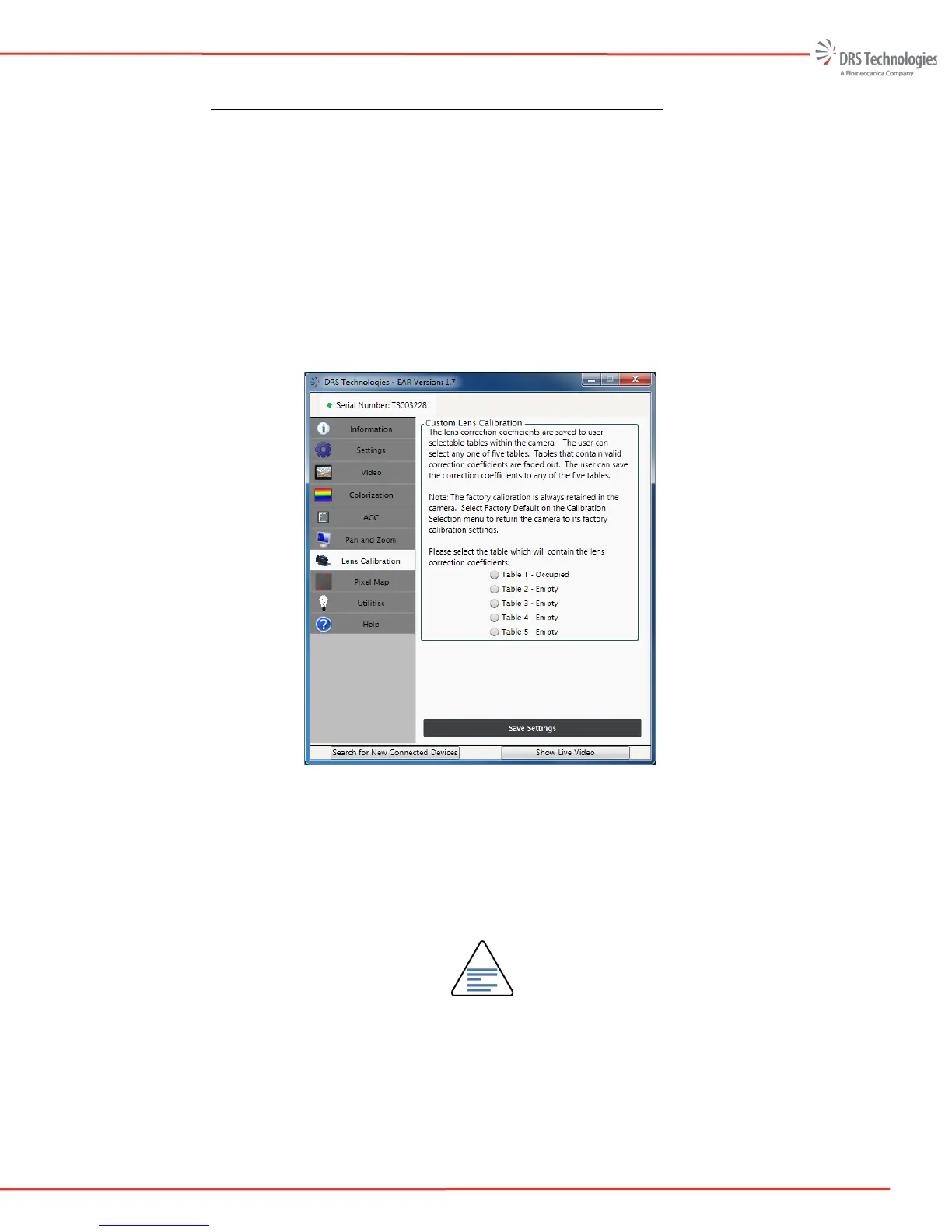 5.7.5 Lens Calibration - Selecting a Table to Store your Data