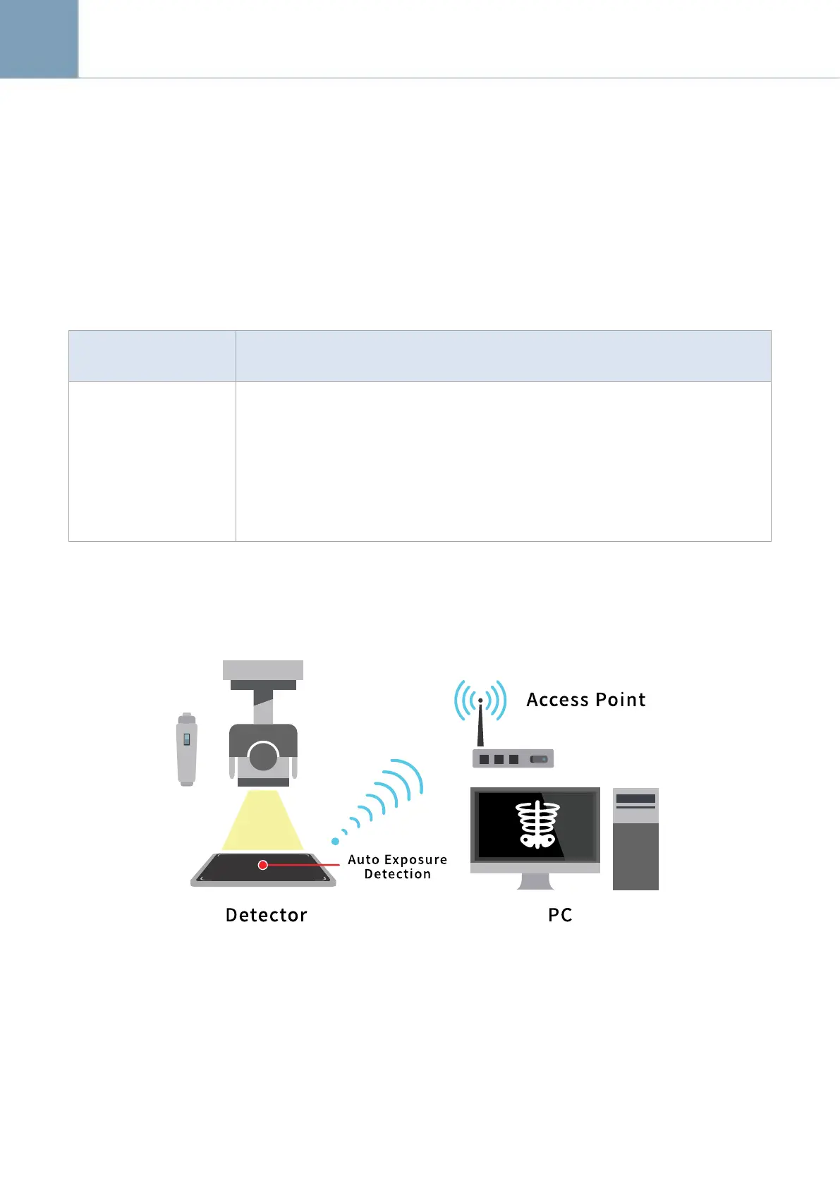 AED Mode is available for acquiring images without any connection to X-ray generator.