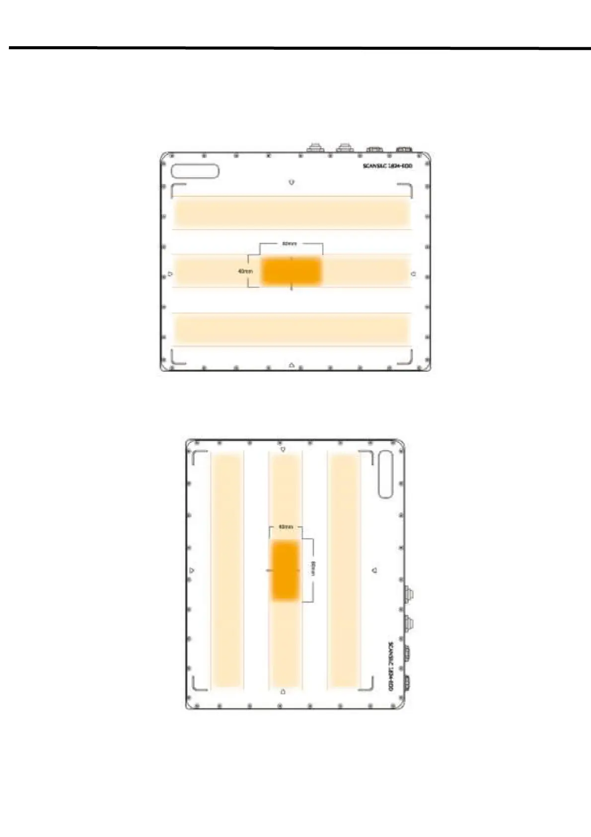 We suggest the collimated area on detector is wider than 4cm X 8cm, and keep along the vertical direction as shown