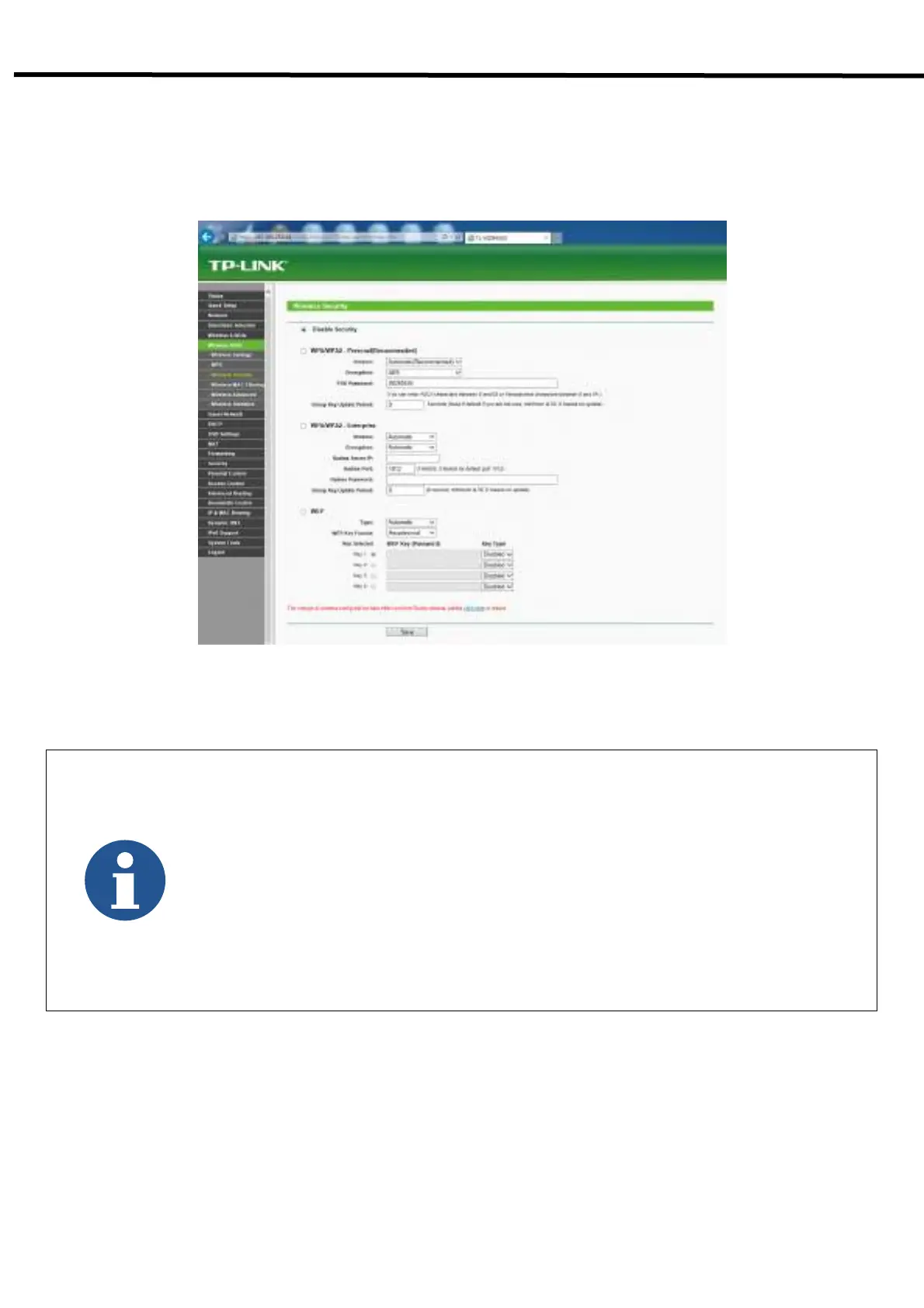 - Choose Wireless 5GHz or 2.4GHz → Wireless Security
