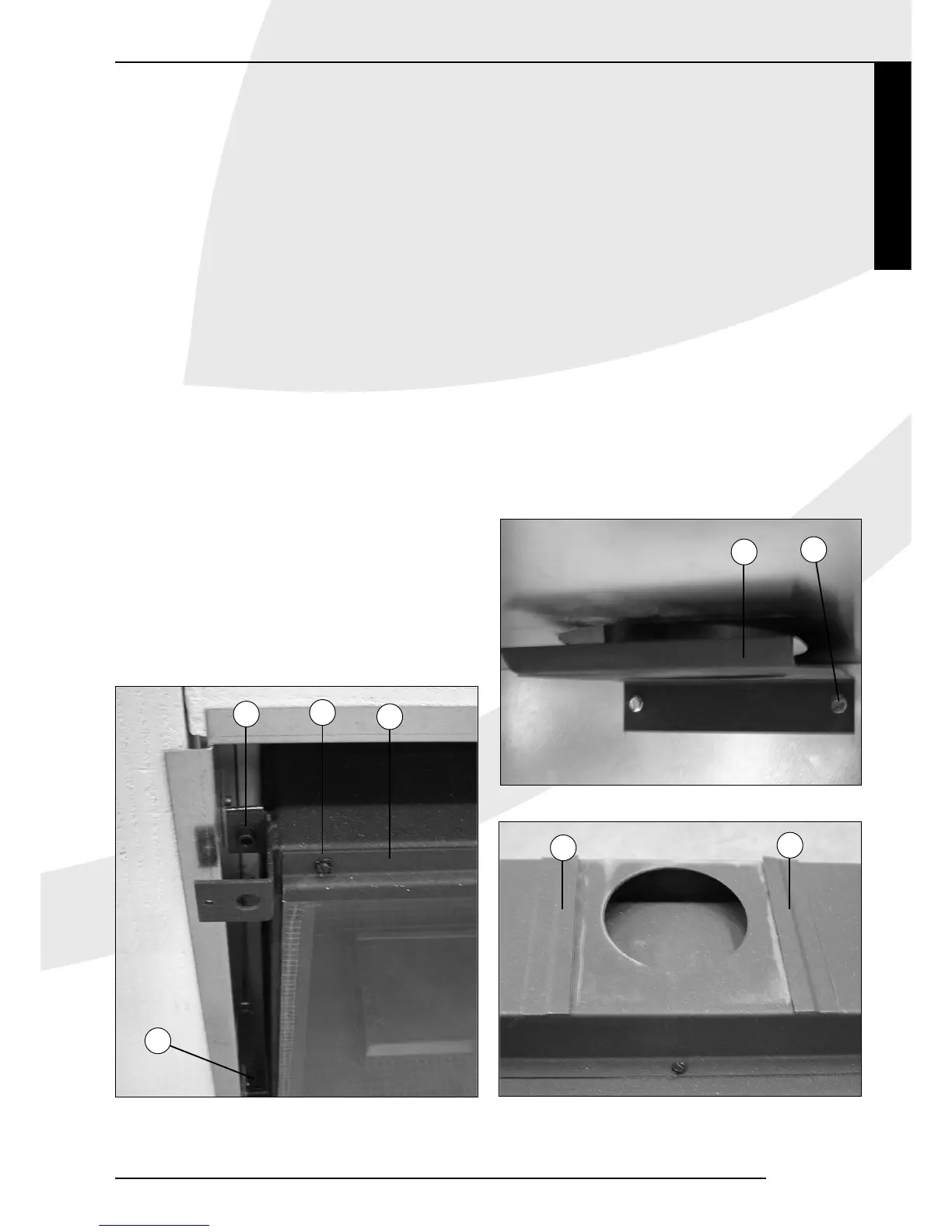 at the top (1).This is fitted with 5 self-tapping screws (2).