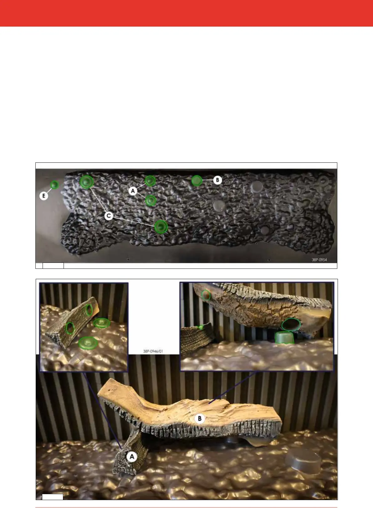 Take log A and place it on the two small positioning cams in the centre rear of the stove (g. 8-53 and 8-54).