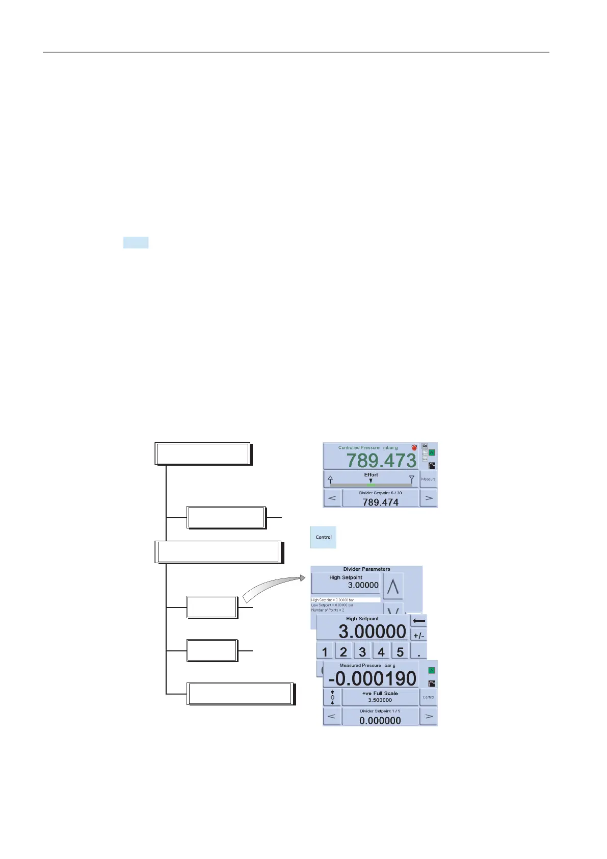 By entering control mode, this allows the Divider sequence of test pressures (and controlled at