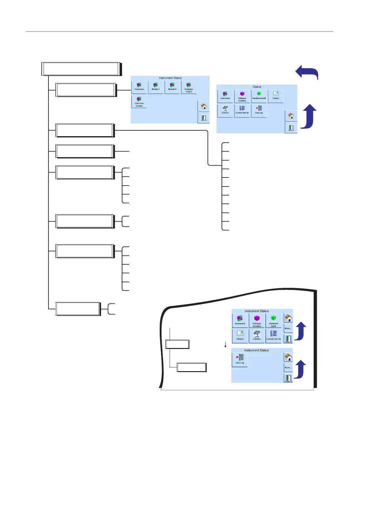 The control setup menu provides access to the status of the instrument:
