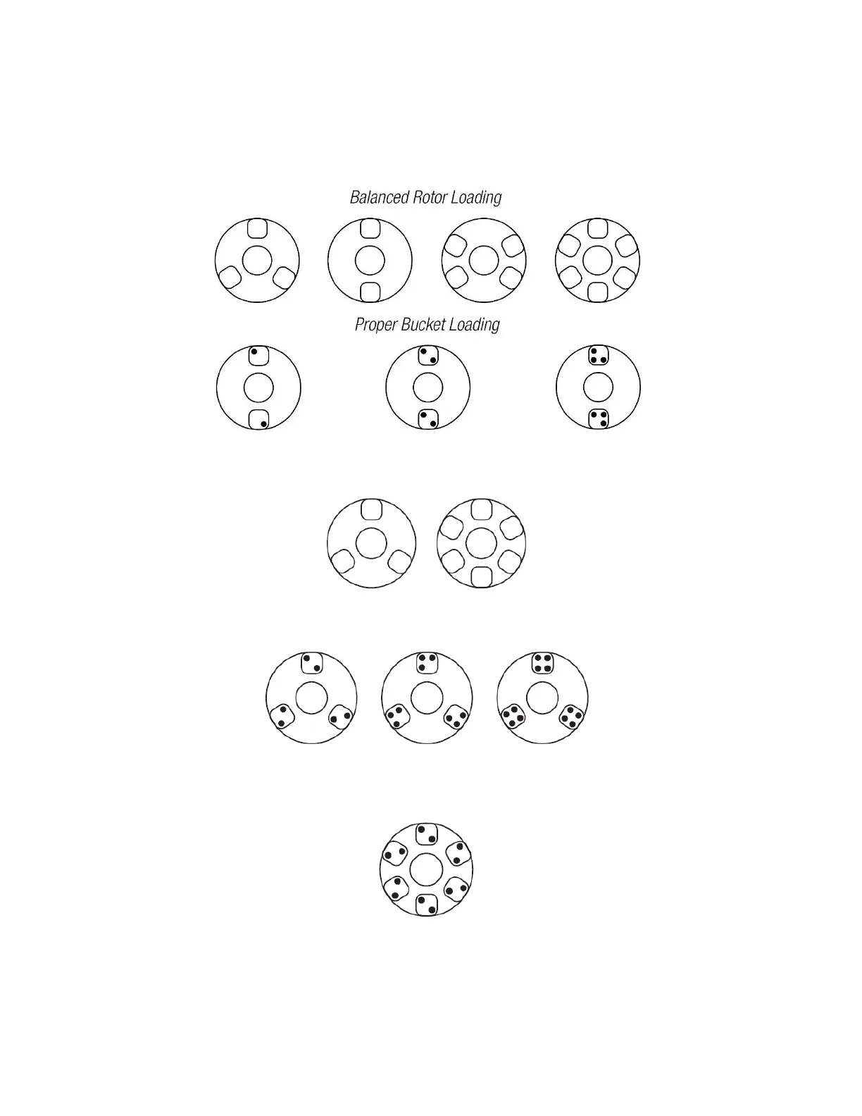 When all six buckets are being used, the rotor must be loaded in the following configuration only. Opposing