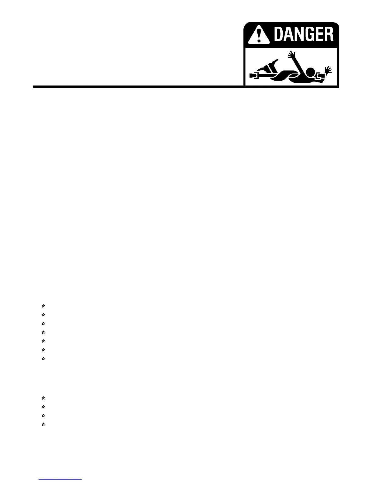! Do not engage or disengage driven equipment by hand from under the vehicle when the