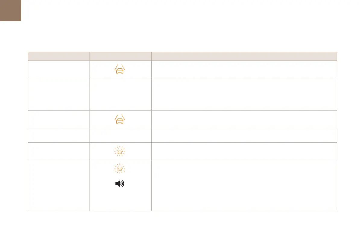 The table below describes the alerts and messages displayed in different driving situations.