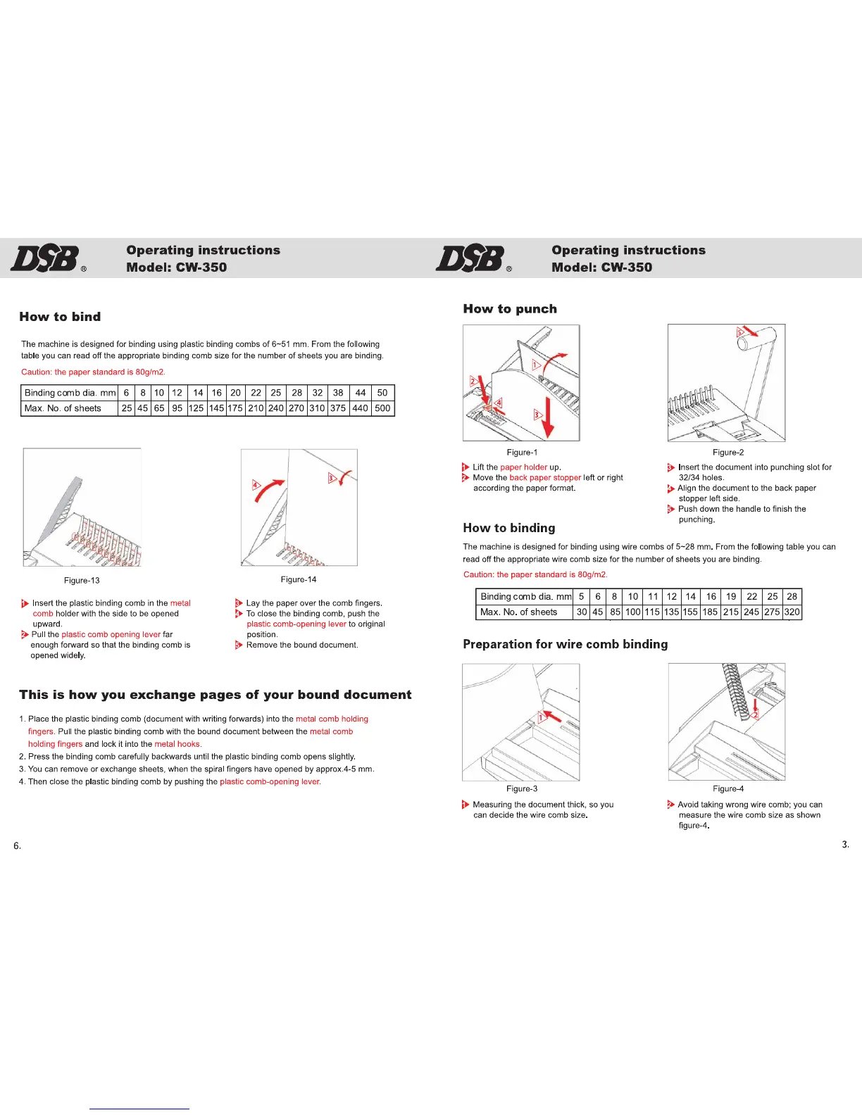 DSB CW-350 - Plastic Comb Binding Procedures; Selecting Plastic Comb Size; Punching for Plastic Combs; Binding with Plastic Combs