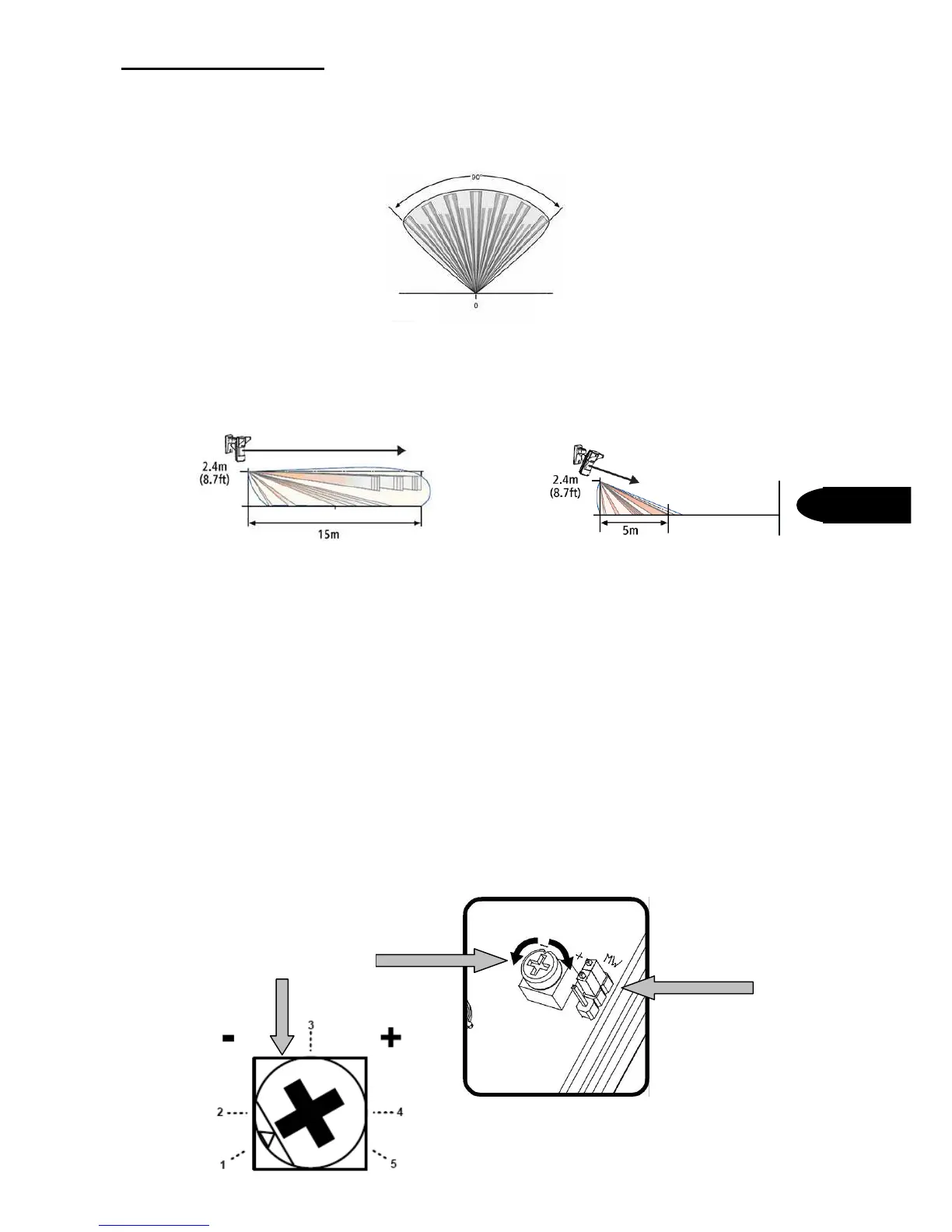A faixa de detecção pode ser ajustada inclinando o detector quando já instalado utilizando