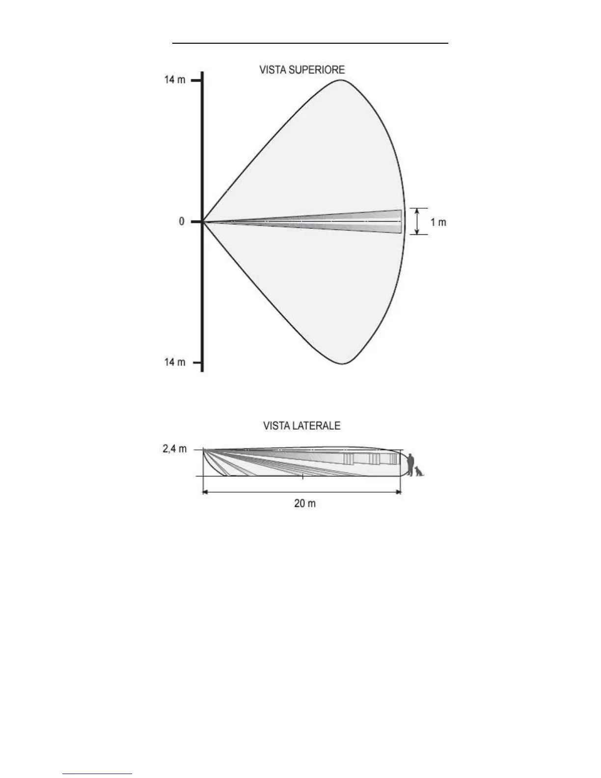 Non sarà generato alcun allarme se viene attraversato solo uno dei fasci di rilevamento PIR e se
