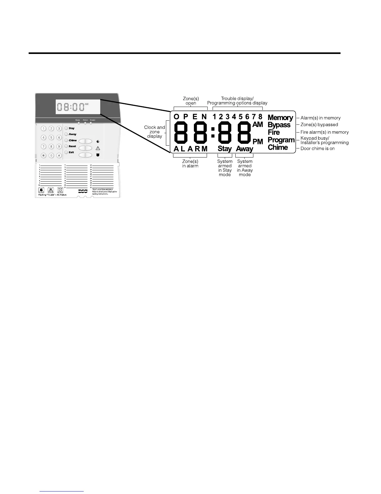 • Ready (green), Armed (red) and Trouble (yellow)