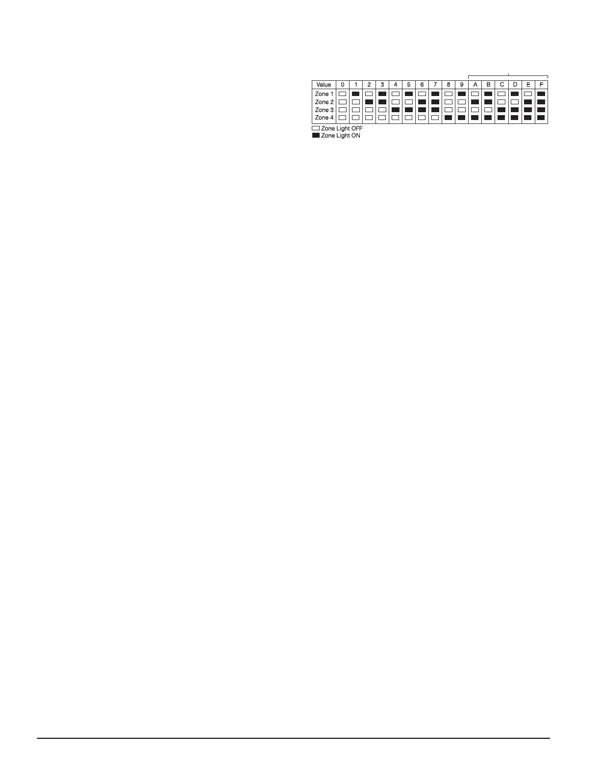 The panel will use zone lights 1 through 8 to indicate if the dif-