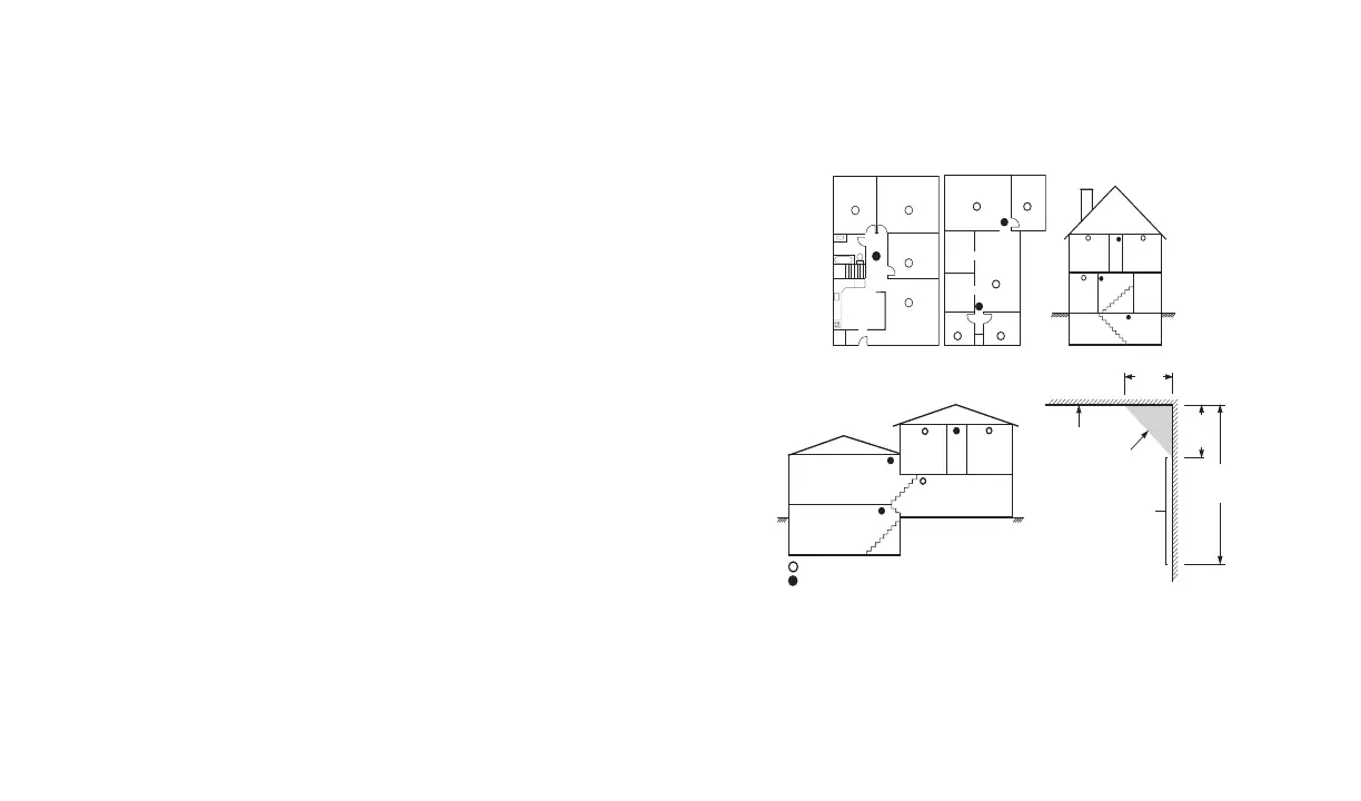 l Ne positionnez pas de détecteurs de fumée au point haut de plafonds en pente; l'espace