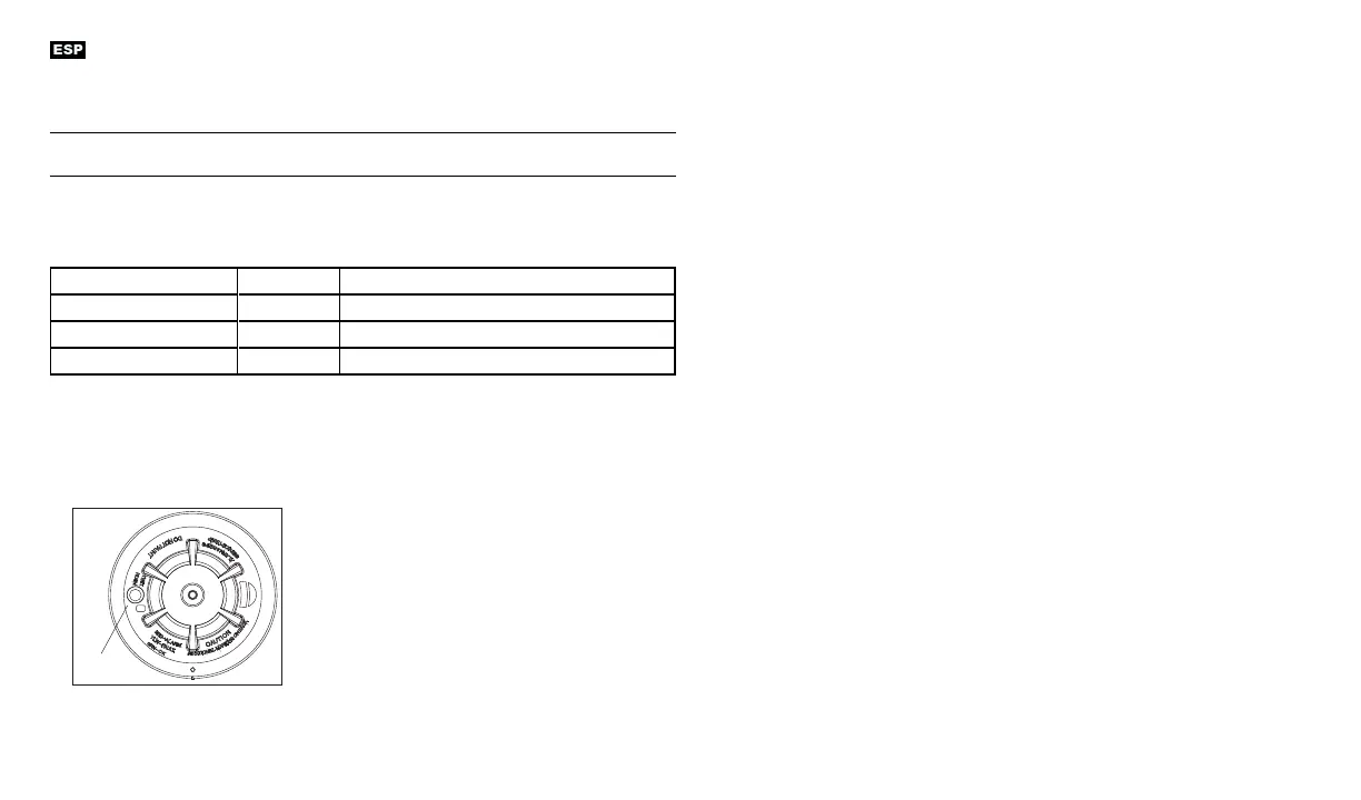 tablecimiento" de la alarma. Durante una alarma, el indicador LED rojo destella una vez por