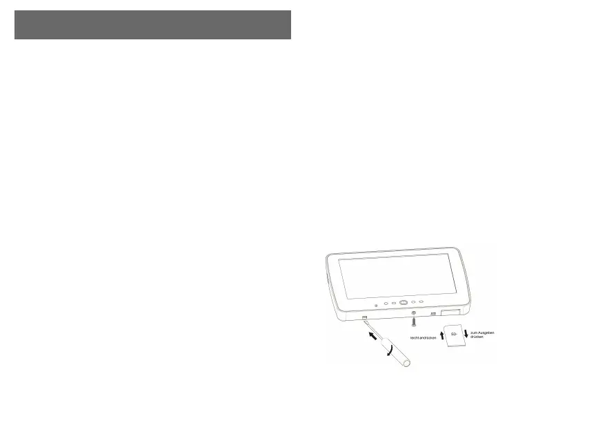 Entfernen Sie die SD-Karte, bevor Sie den Touchscreen öffnen. Siehe folgende