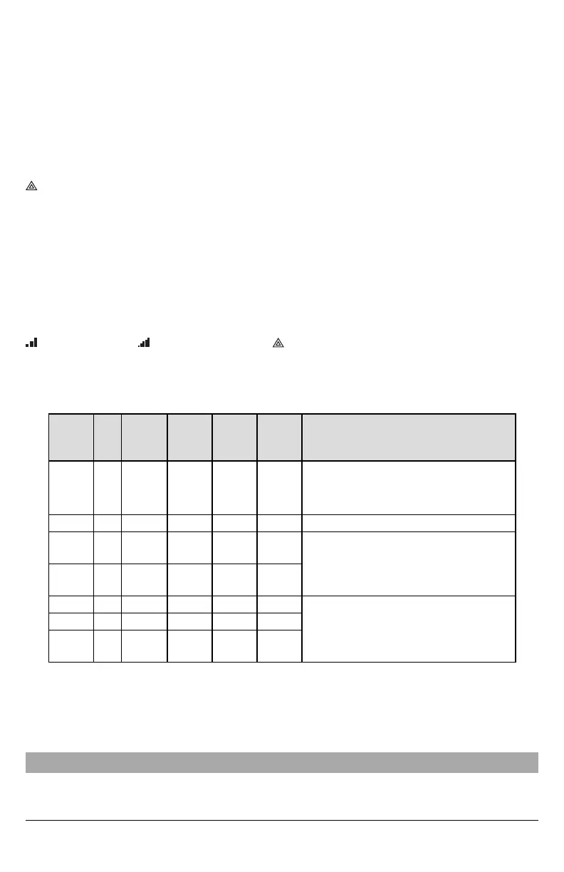 NOTE: If the yellow LED is flashing, signal strength in table below is not valid.