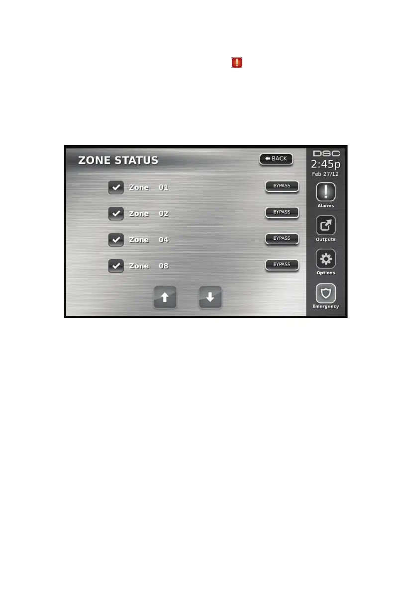 Back or Home to exit. To clear the memory, arm and disarm the system.
