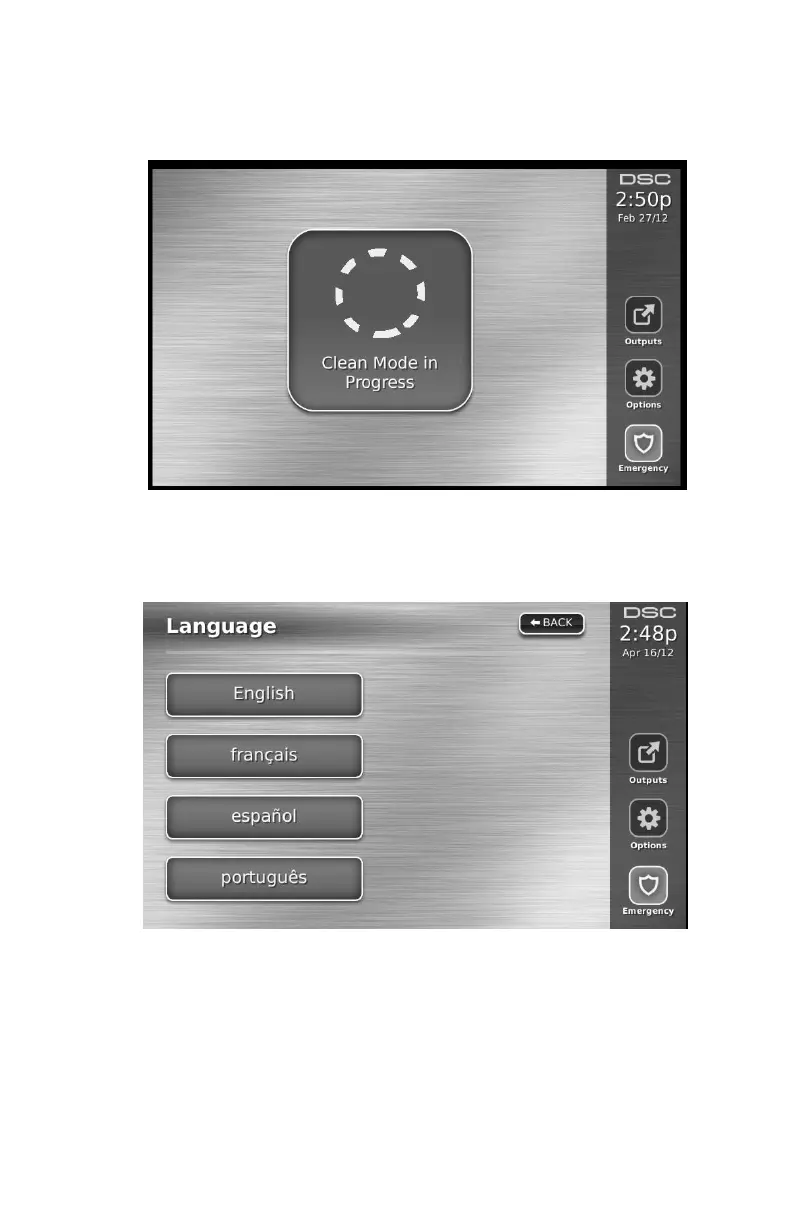 Clean Mode – allows the user to touch (i.e., clean) the screen without enabling or disabling any func-