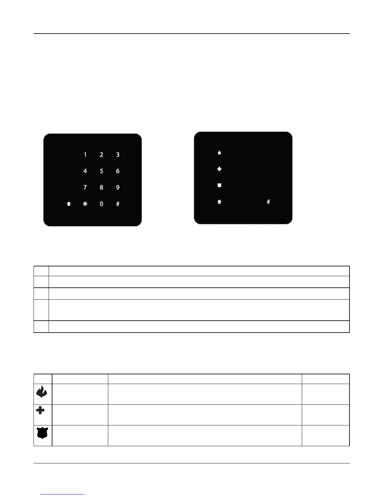 The Fire, Auxiliary and Panic keys can be enabled independently by the installer. All three are enabled by default. The