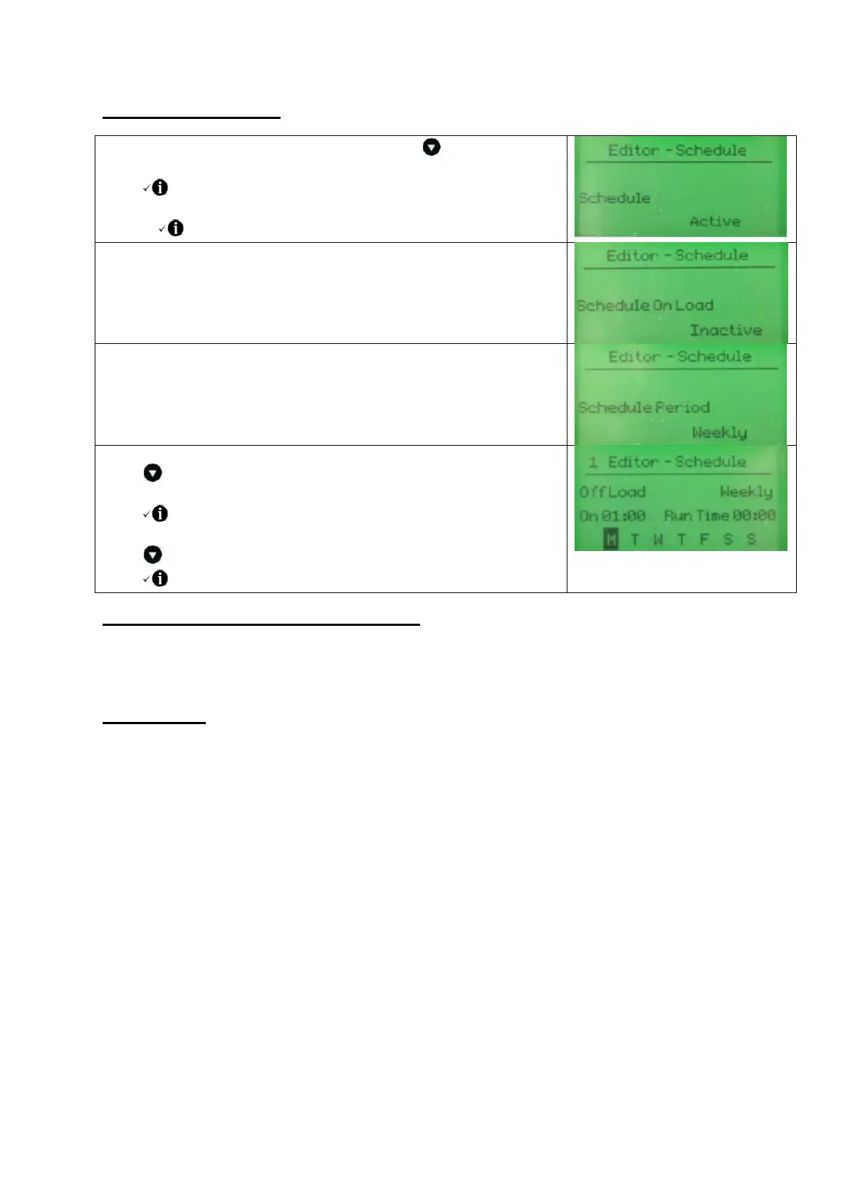 Press to move to the next editable value. (On, Day, Run Time etc)