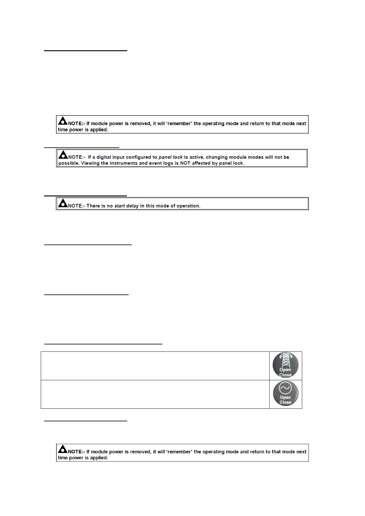 Manual mode allows the operator to start and stop the set manually, and if required change the state