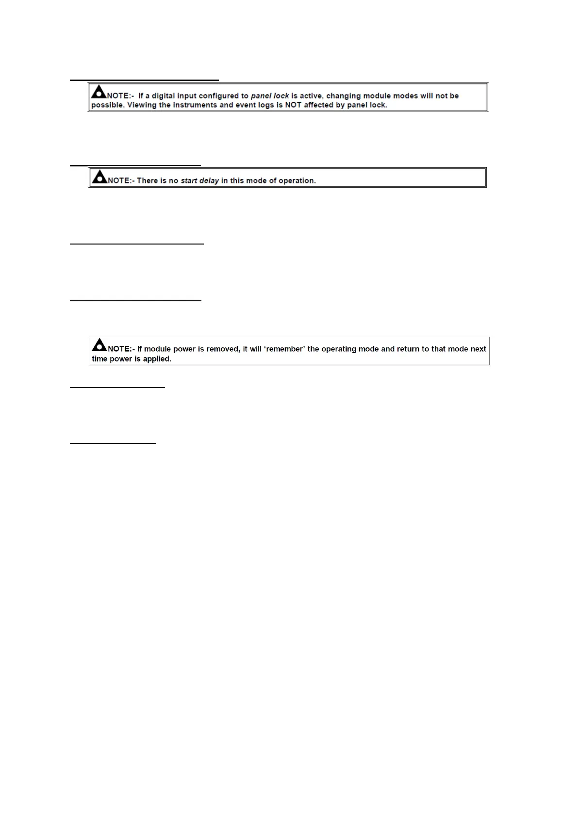 Manual mode allows the operator to start and stop the set manually, and if required change the state