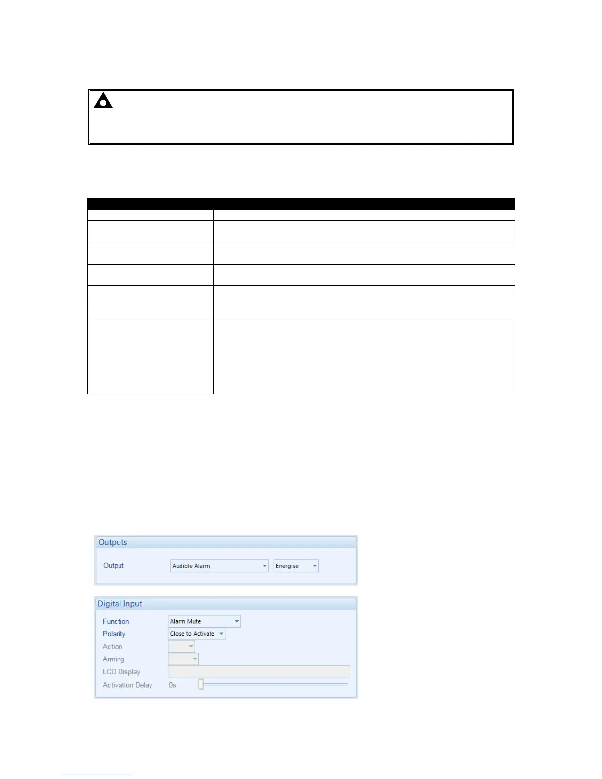 sounder. The Alarm mute input and internal alarm mute button activate ‘in parallel’ with each other.