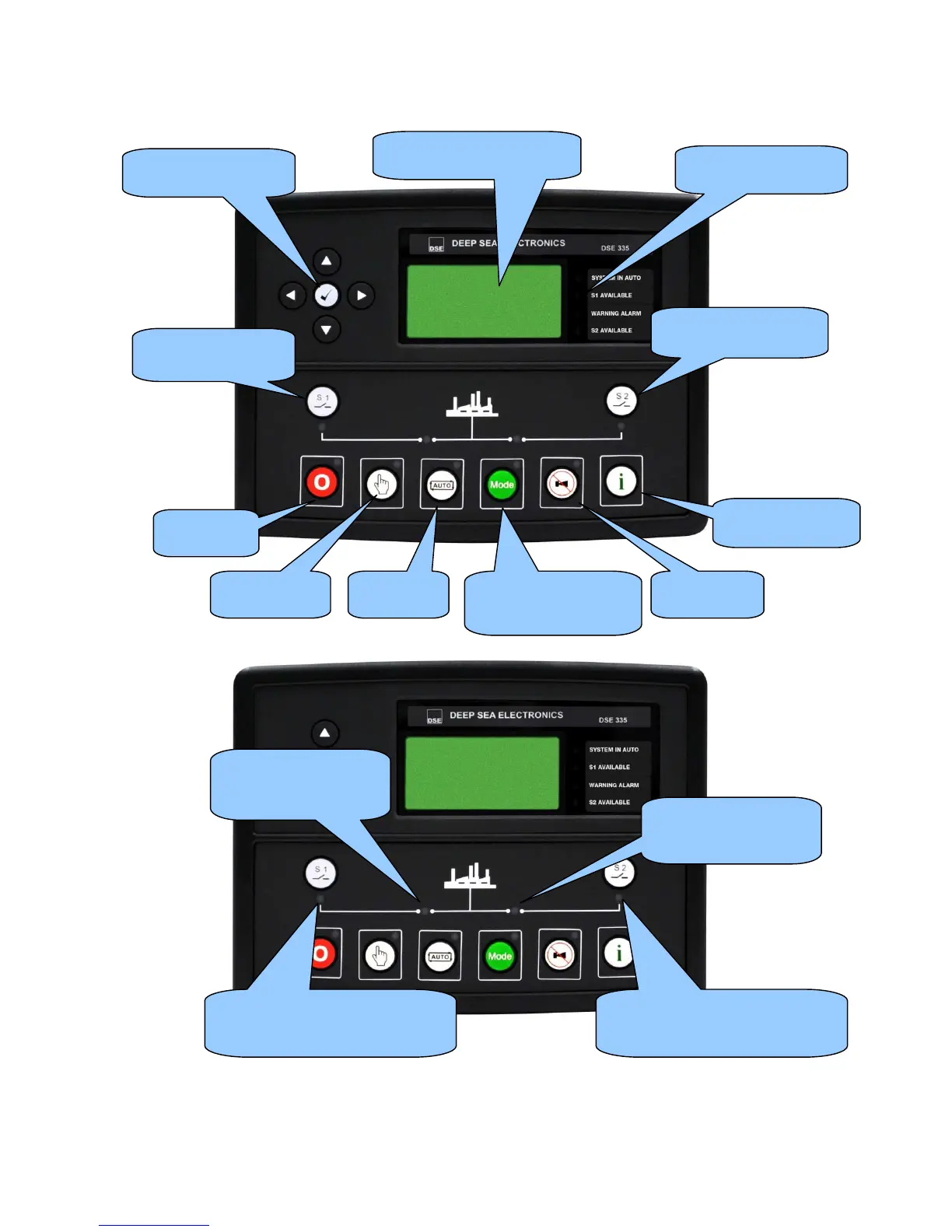 DSE 335 - 4 DESCRIPTION OF CONTROLS; Control Panel Overview; S1;S2 Status Indicators