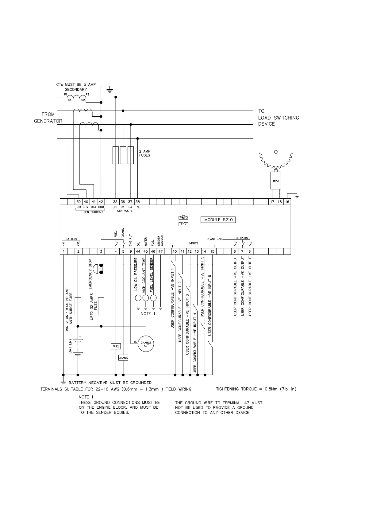 DSE 5210 - Typical Wiring Diagram for DSE 5210