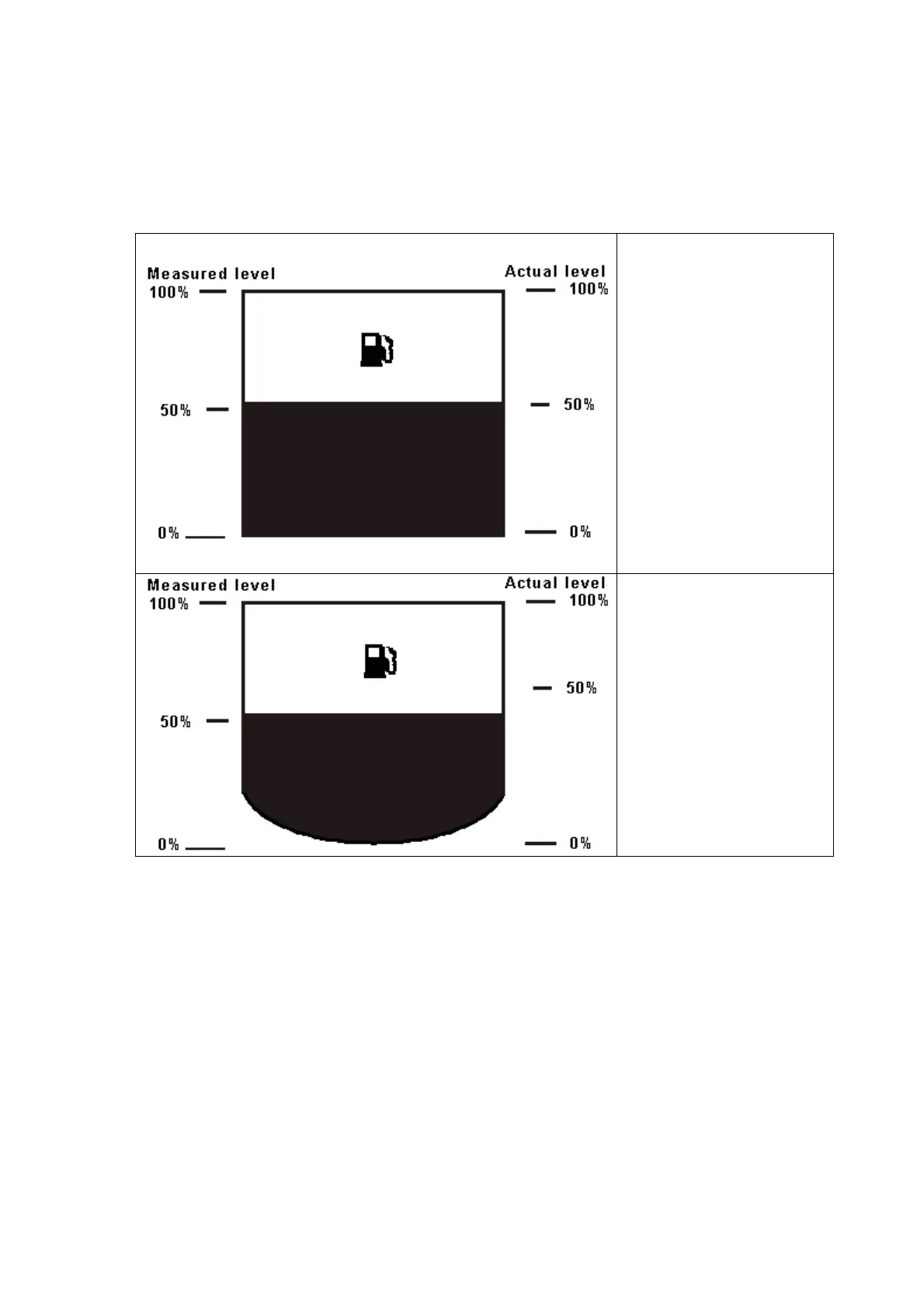 parallel sided fuel tank, an accurate measure of the fuel level can easily be made, however as shown in the
