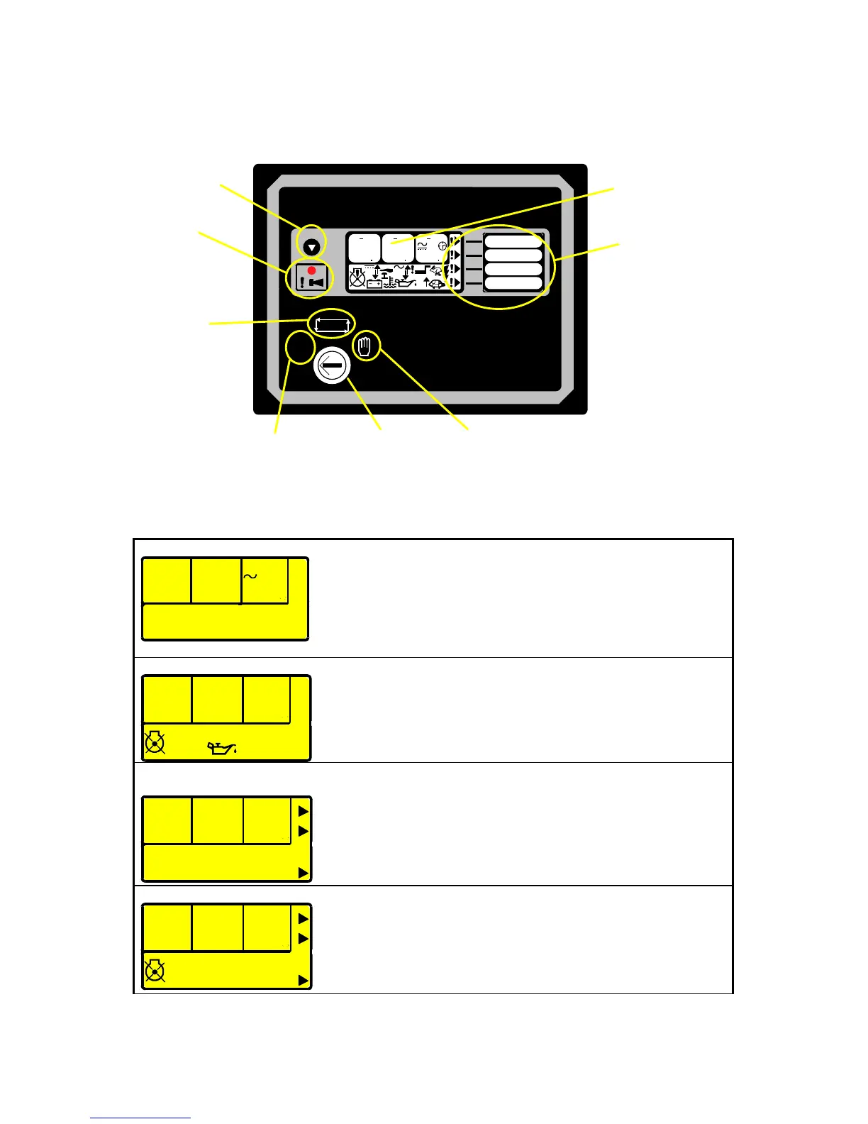 , ‘OIL PRESSURE’, ‘HOURS RUN’, etc.