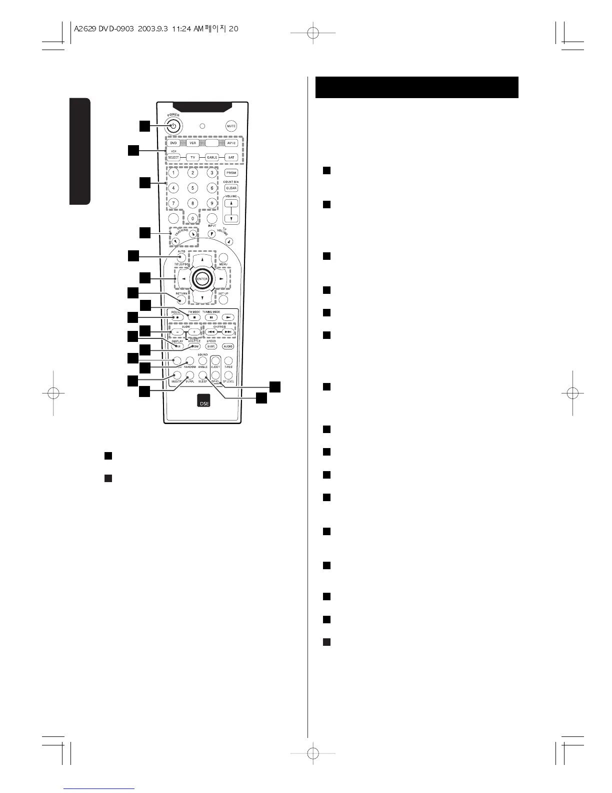 VCR SELECT : When in VCR mode, press to select the device