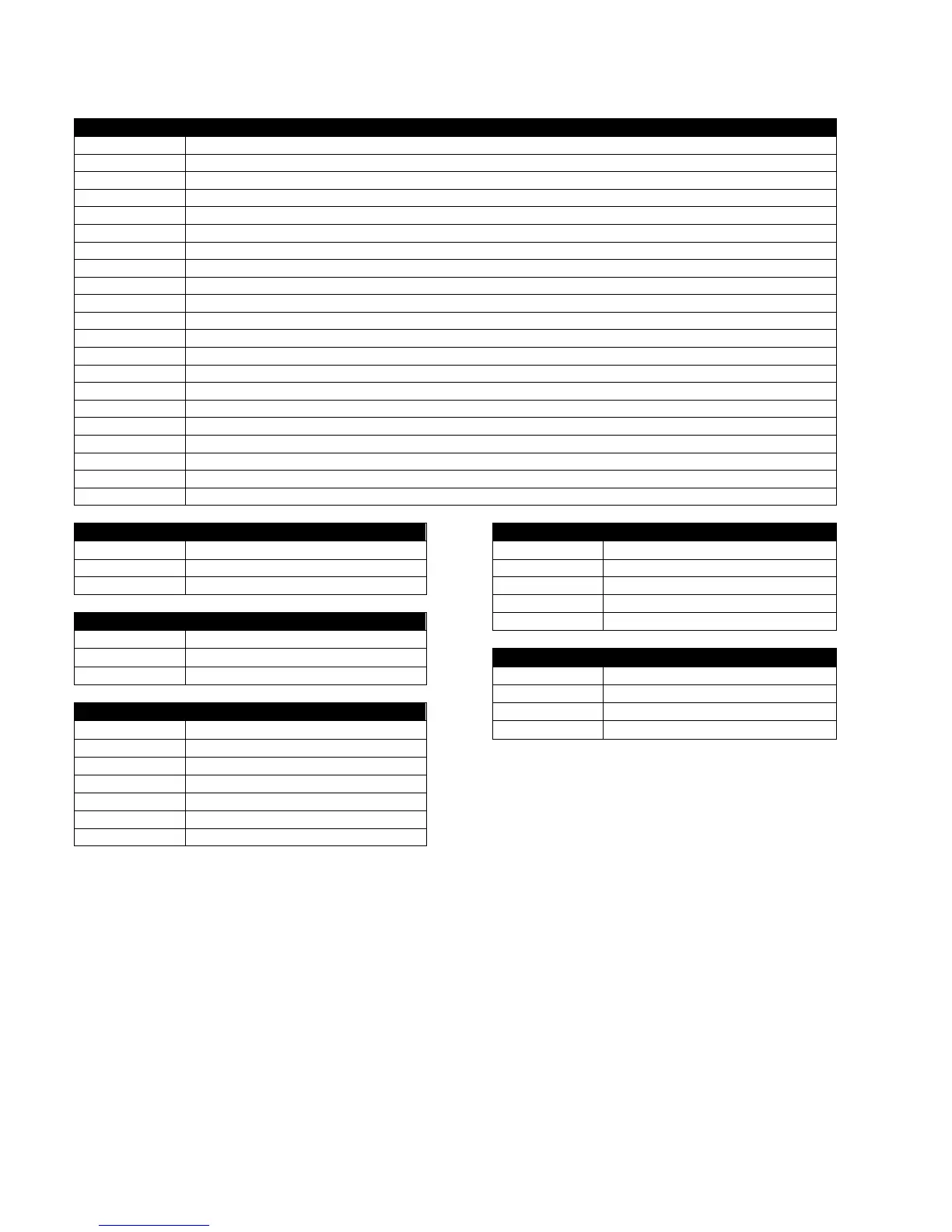 Parameters with multiple choices use the following identification tables for the parameter values: