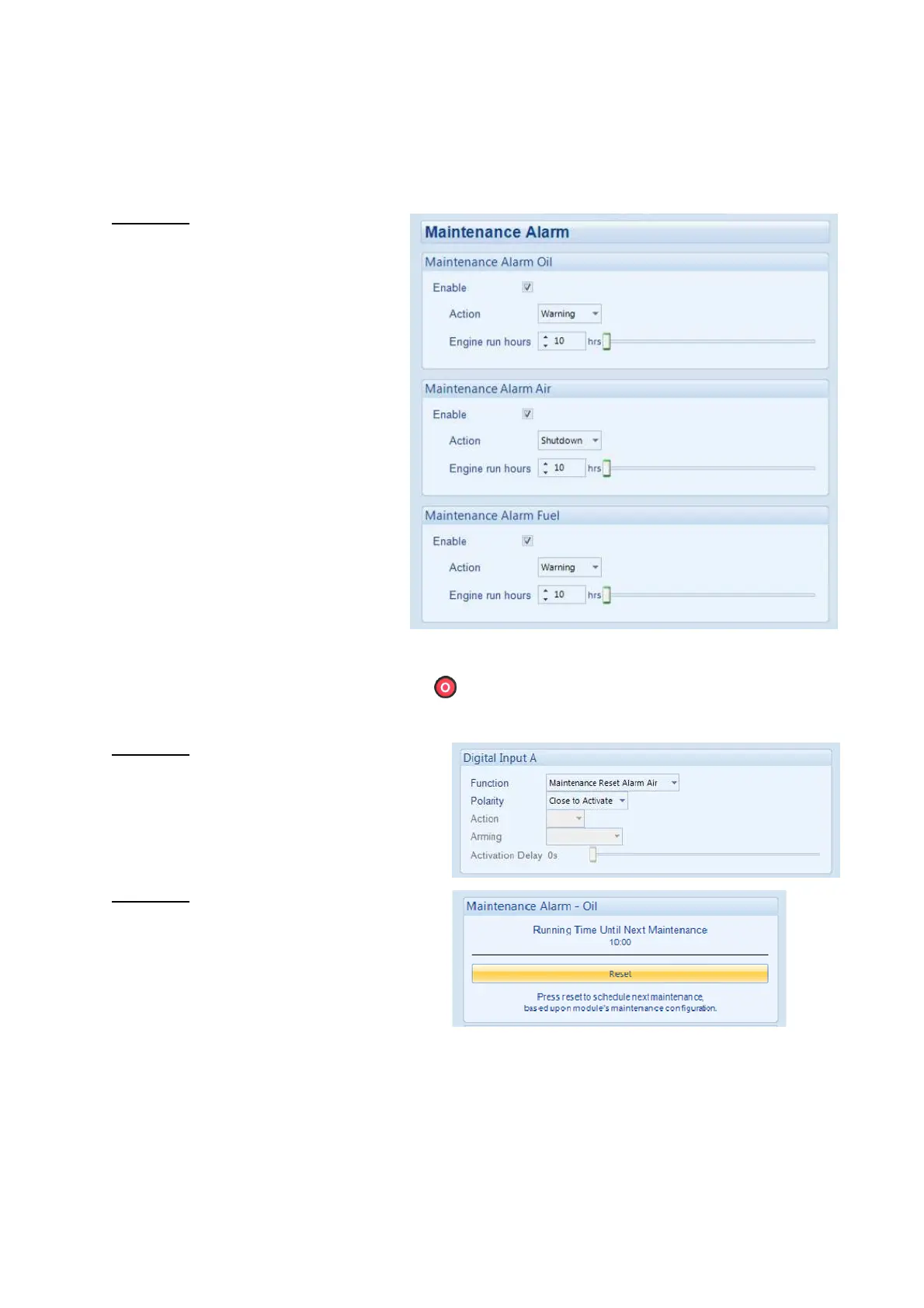 Depending upon module configuration one or more levels of engine maintenance alarm may occur