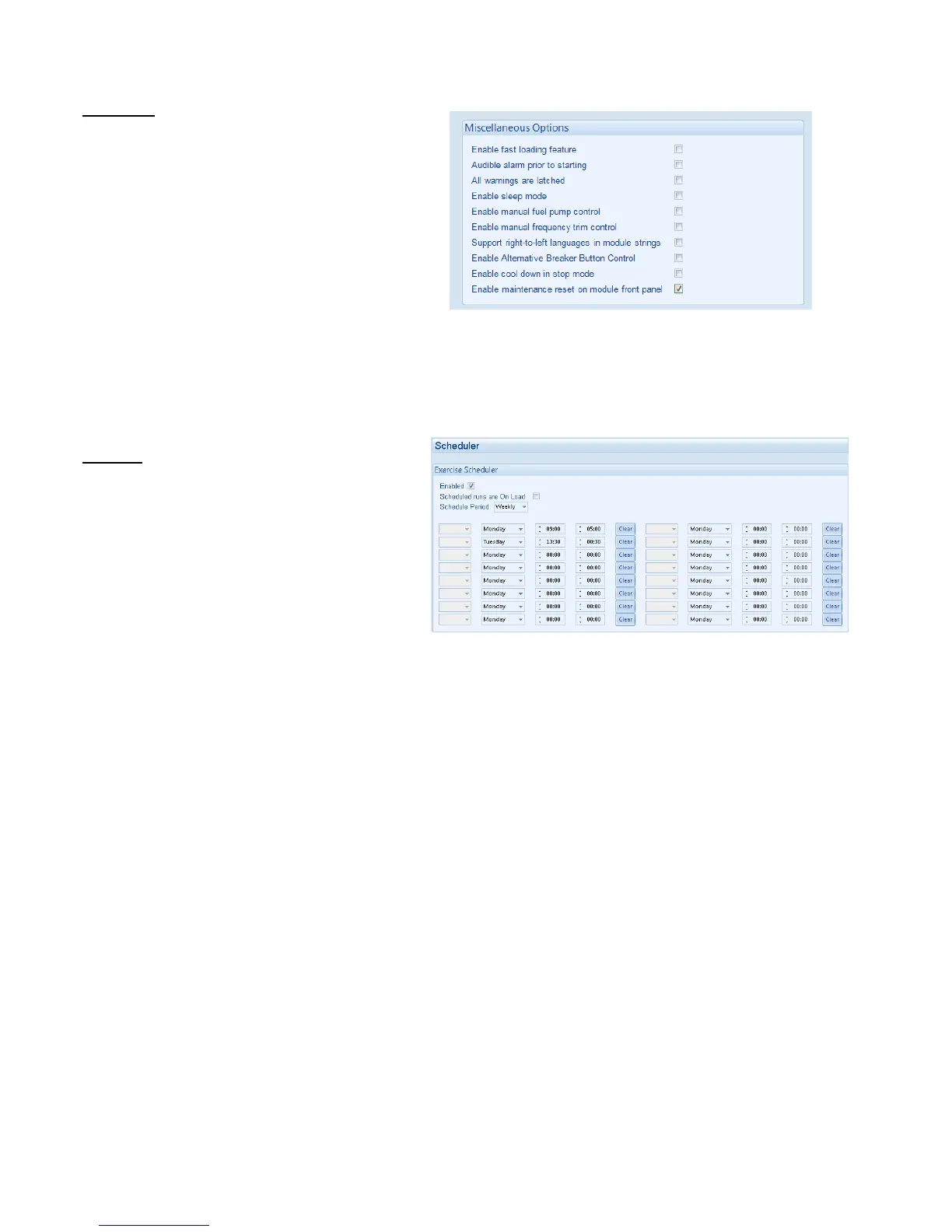 • Scheduled runs will operate ONLY if the module is in AUTO mode with no Shutdown or Electrical Trip