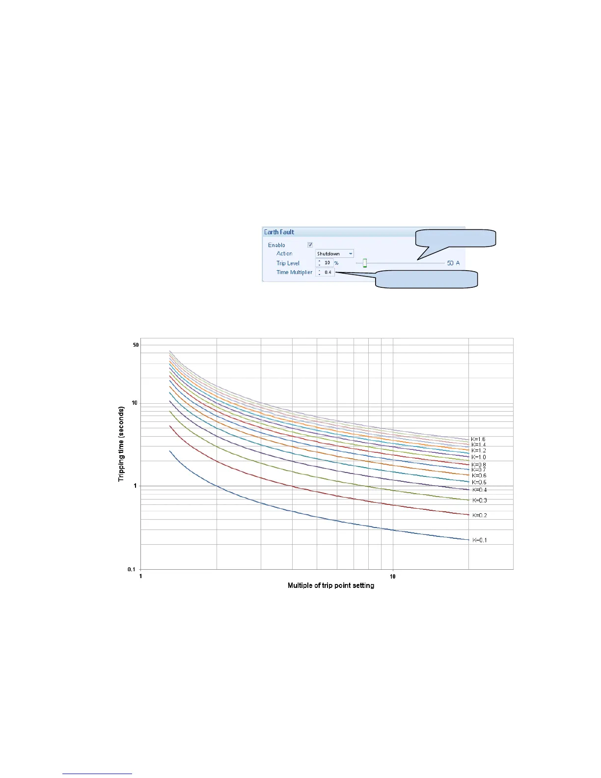 The higher the Earth Fault, the faster the trip. The speed of the trip is dependent upon the fixed formula :