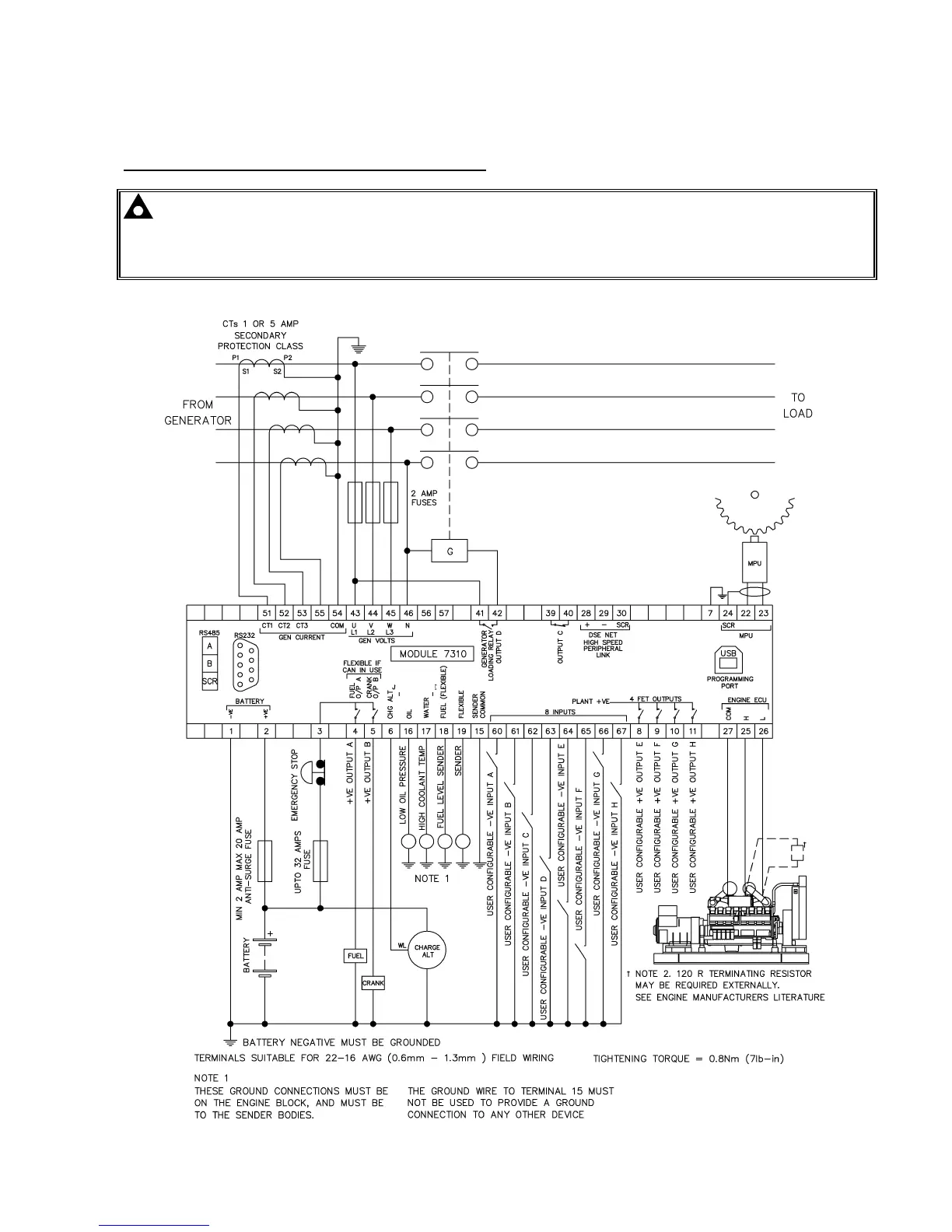 NOTE:- Earthing the neutral conductor ‘before’ the neutral CT allows the module to read earth faults