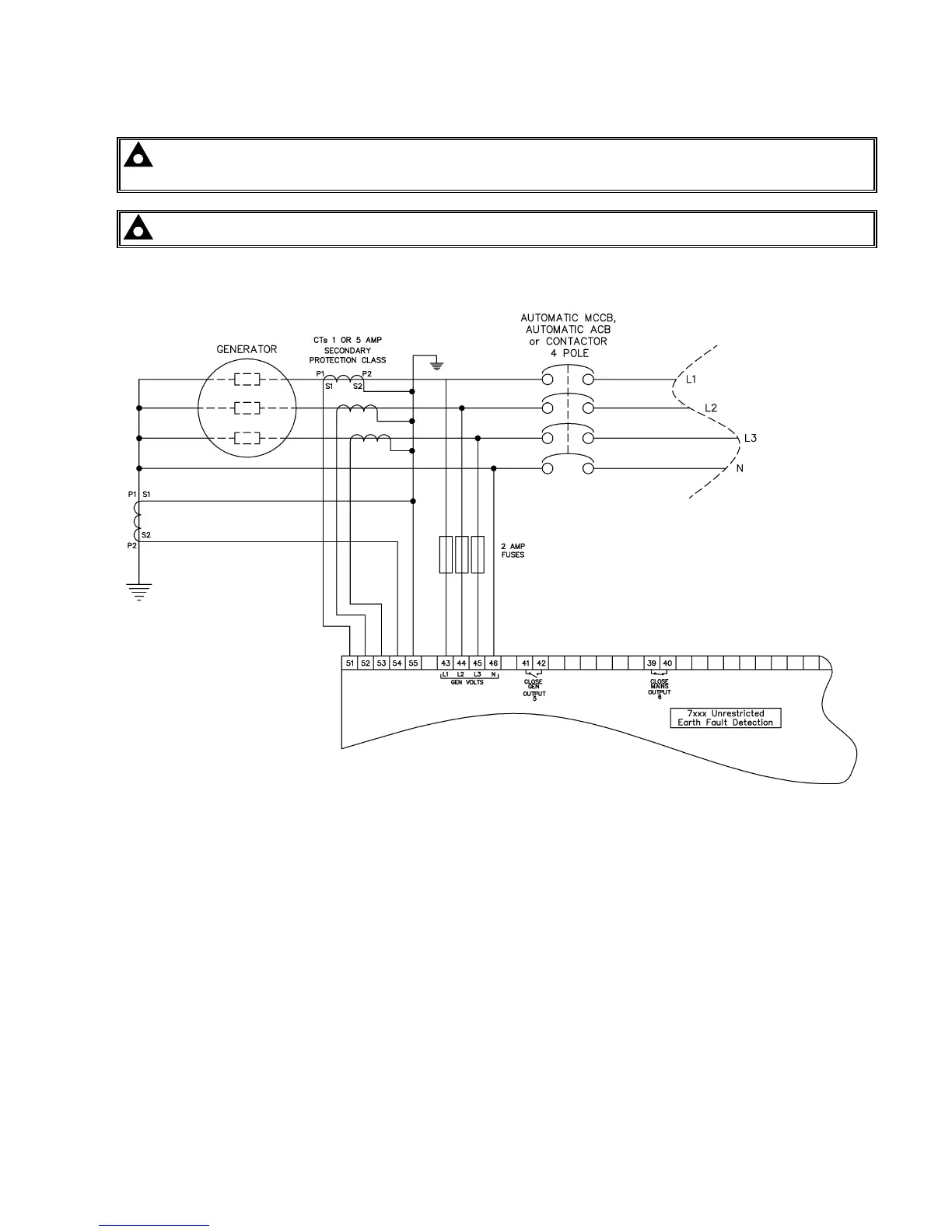 NOTE:- Earth fault protection alarm only available on 7300 series V2.0 and above controllers. 7300
