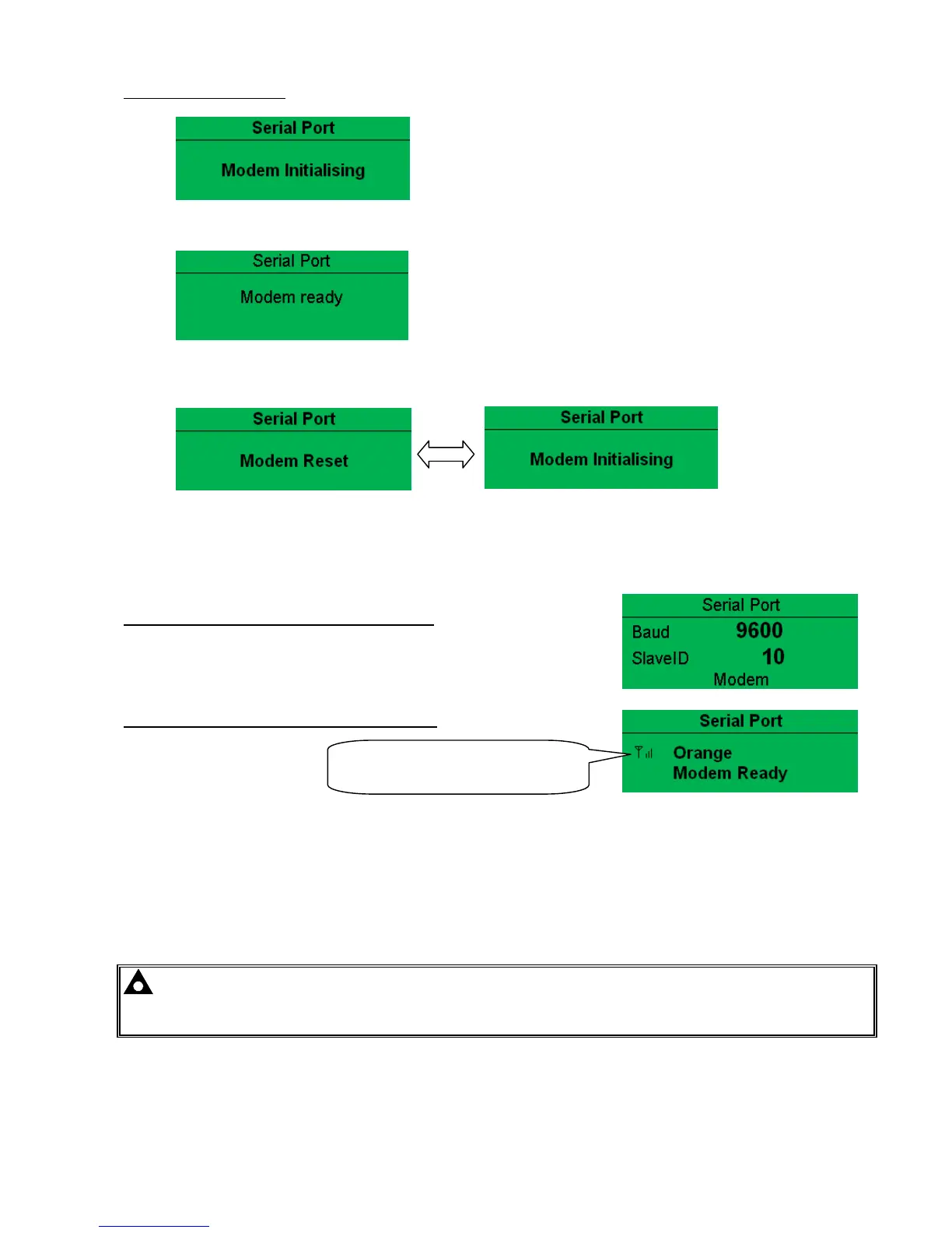 between ‘Modem Reset’ and ‘Modem Initialising’ as the module resets the modem and attempts to