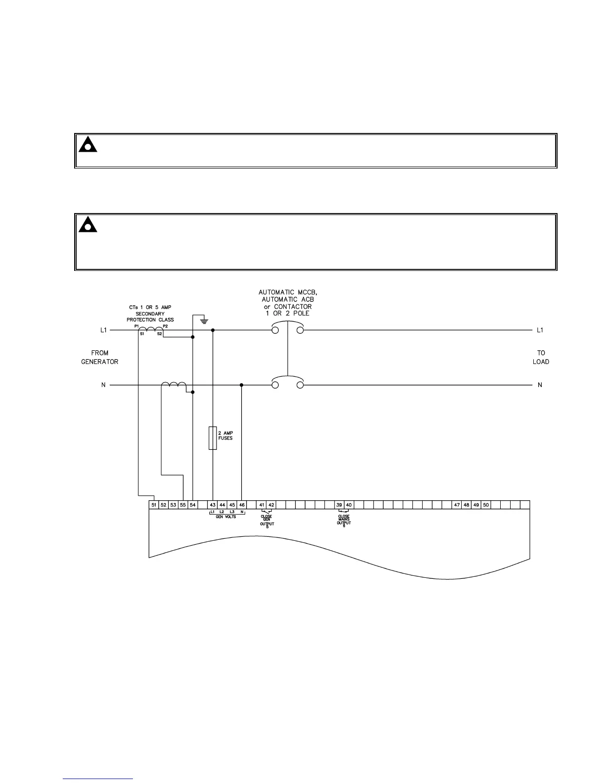 NOTE:- Earthing the neutral conductor ‘before’ the neutral CT allows the module to read earth faults