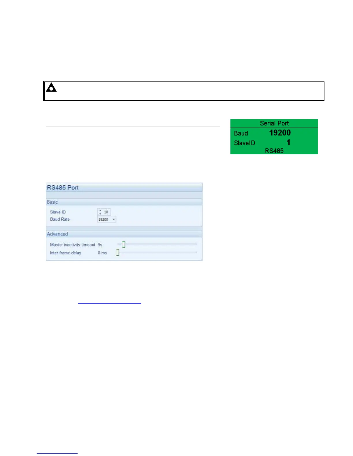 NOTE:- Factory Default settings are for the RS485 port to operating at 19200 baud, modbus slave