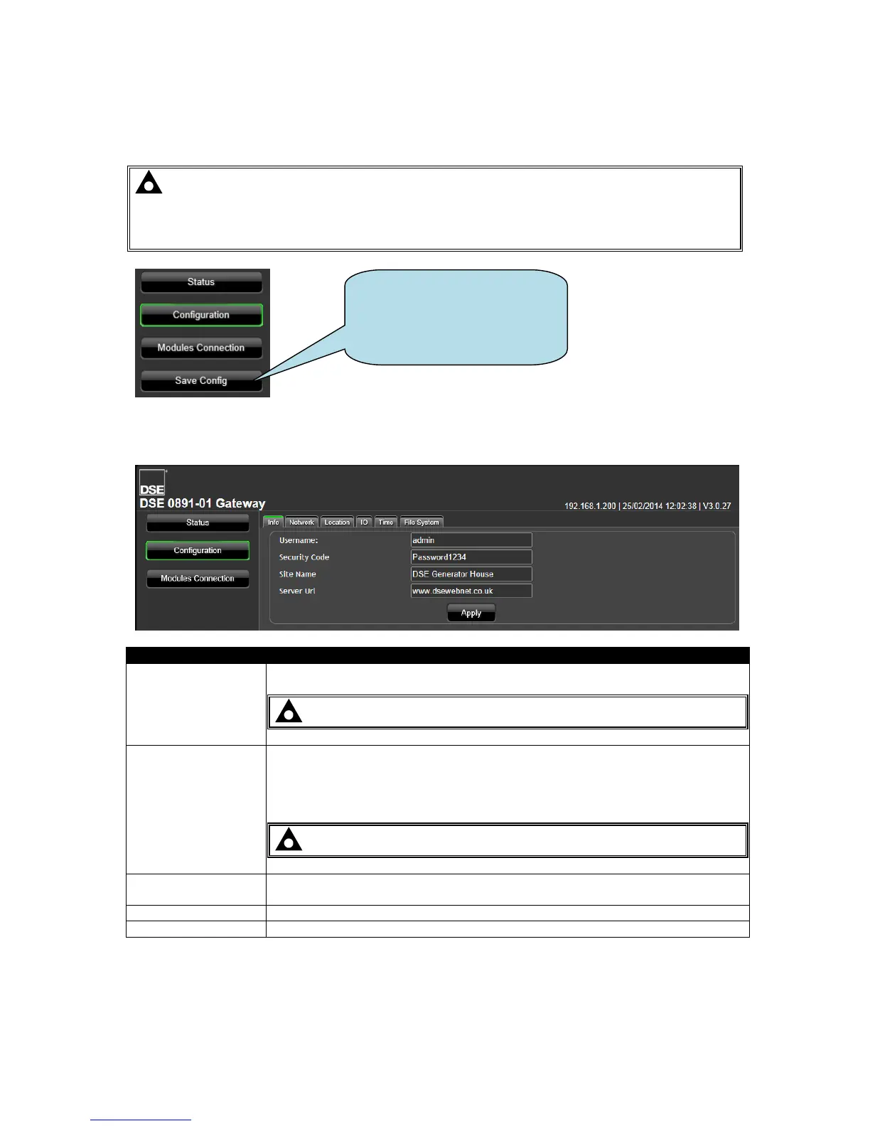 settings on other pages to be changed. A new button, Save Config becomes available