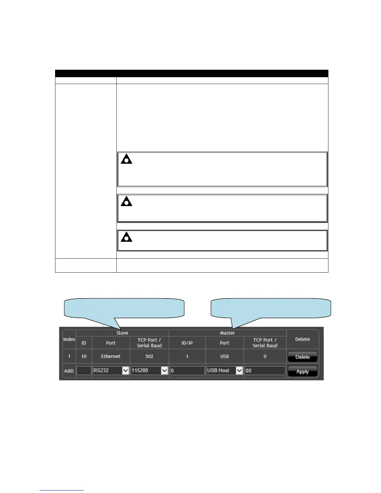 entry must be created for RS485 in the Slave column. Each entry in the