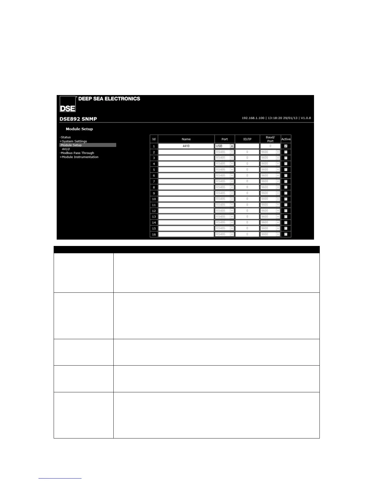 This page is used to configure the DSE892 Gateway’s connections to DSE controllers.