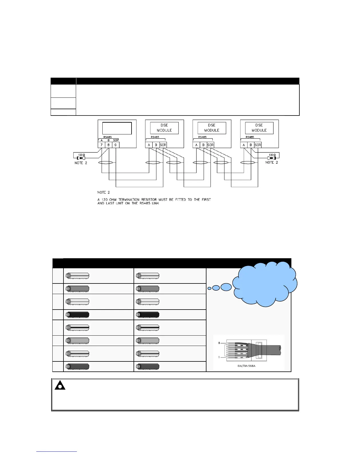 Ensure termination resistors (120Ω) are fitted as shown to the ends of the link as per RS485 standard.